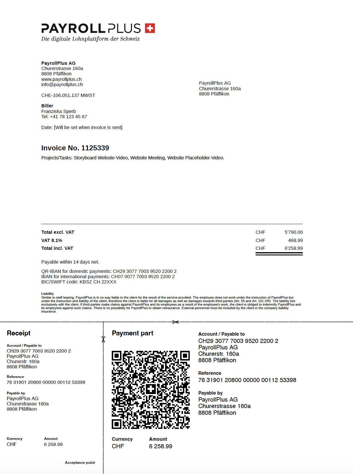 You can individualize the invoices and attach additional files as well. Once a customer has paid your invoice, you can trigger your payroll payment.