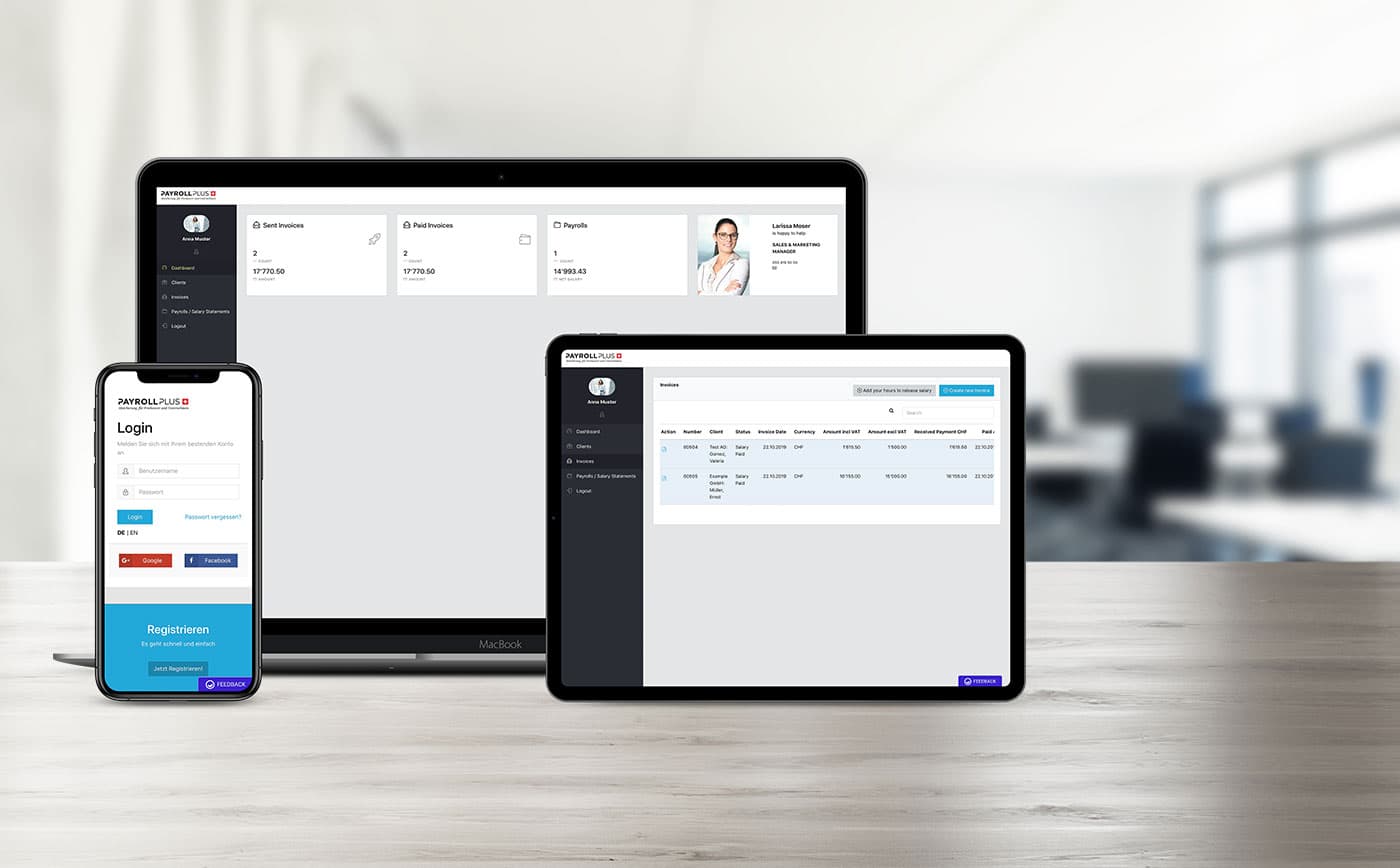 Potete registrare i vostri clienti, inviare fatture con il vostro logo e avviare il processo di pagamento del salario.