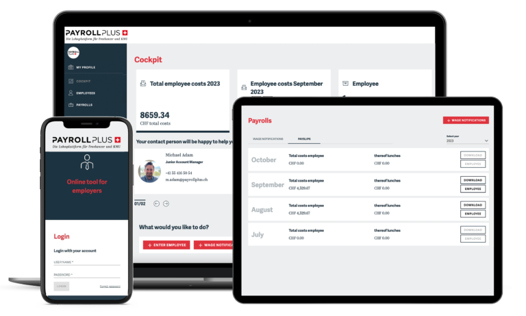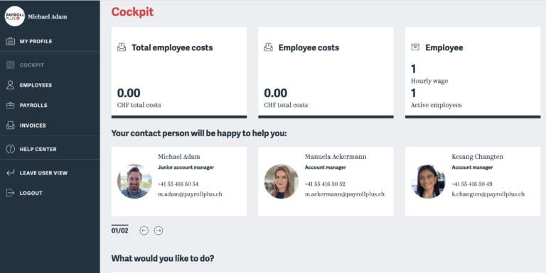 Invece di pagare i salari direttamente ai vostri dipendenti, trasferite i costi totali alla piattaforma svizzera di payroll. Al resto pensiamo noi.