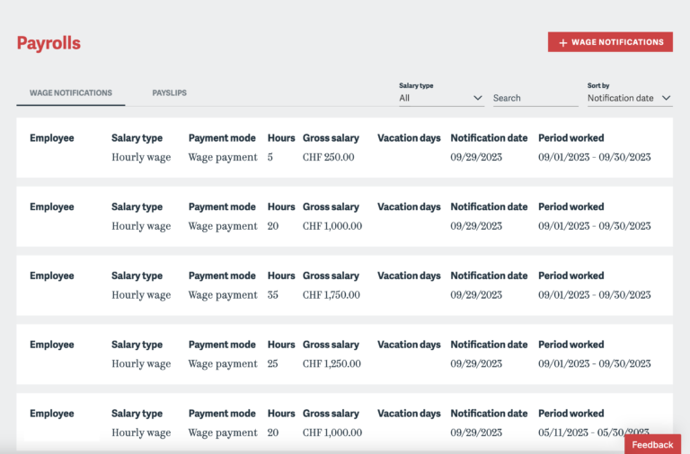 Con il nostro semplice strumento online, potrete registrare i vostri dipendenti in modo digitale e pagare gli stipendi con un solo clic